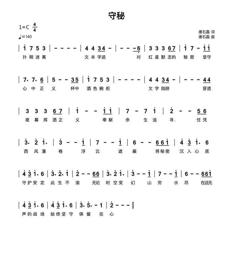 慶祝建黨百年獲獎(jiǎng)歌曲作品選集——《守秘》詞曲。 編輯:高思佳相關(guān)推薦: