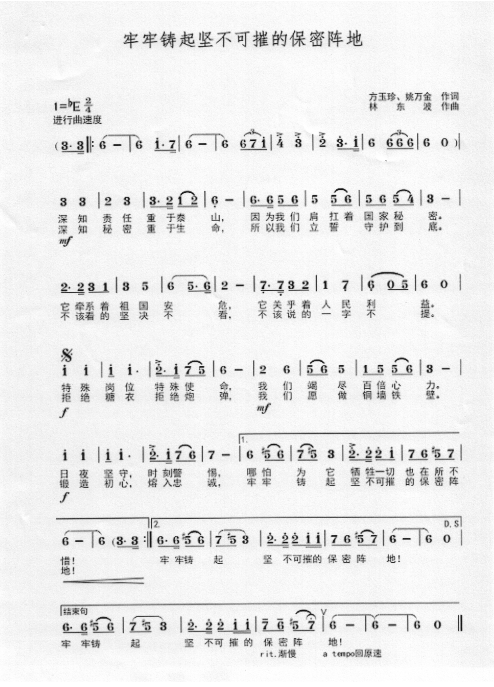 慶祝建黨百年獲獎(jiǎng)歌曲作品選集——《牢牢鑄起堅(jiān)不可摧的保密陣地》詞曲。 編輯:北月相關(guān)推薦: