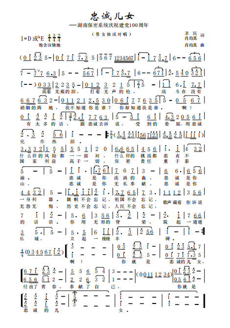 慶祝建黨百年獲獎(jiǎng)歌曲作品選集——《忠誠兒女》詞曲。 編輯:北月相關(guān)推薦: