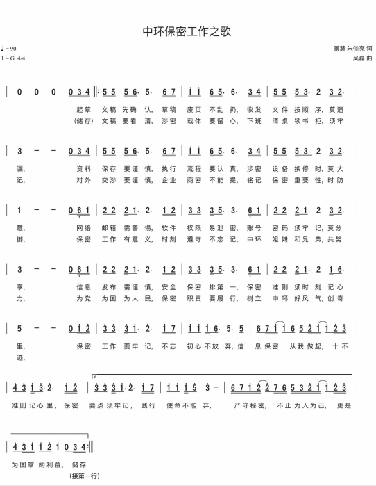 慶祝建黨百年獲獎(jiǎng)歌曲作品選集——《中環(huán)保密工作之歌》詞曲。 編輯:北月相關(guān)推薦: