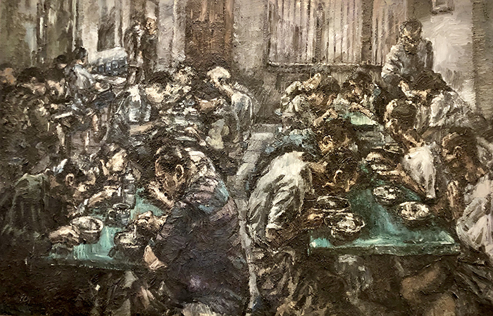 趙銀鷗 《2007.26》 2007 布面油畫 210×320厘米 趙銀鷗的參展作品被分成了兩部分:二層呈現(xiàn)了很多自己遭遇、夢(mèng)境、心情、糾結(jié)等情景和情緒的表達(dá),一層則是觀察他人的圖像。但不論是描繪他人還是自己,我們都看到了我們自己對(duì)“人為何樣”理解的狹隘性。 趙銀鷗:當(dāng)人被空間壓榨到只剩下自己的身體可以被支配時(shí),情感是最真實(shí)的。 2004年,我去到詩人食指待了15年的第三福利醫(yī)院(精神病院),到2011年結(jié)束。開始的原因是當(dāng)時(shí)在精神病院一堆雜亂的被子中,一個(gè)中年男子一直在看著我,我也看著他畫速寫。那個(gè)男人在自慰,當(dāng)時(shí)我發(fā)現(xiàn):“哦,這是人”。2011年結(jié)束是由于在坐地鐵時(shí),我突然發(fā)現(xiàn)自己產(chǎn)生了“用救生錘把玻璃砸碎”的愉悅想法,于是我結(jié)束了呆在精神病院的日子。2014年我在釜山進(jìn)行一個(gè)月的駐地項(xiàng)目。這一個(gè)月中只有自己和自己,這種感覺很奇妙。在“釜山”系列之后繼而轉(zhuǎn)化為“我與我”和“我們”這個(gè)階段,這是我的四個(gè)系列。開始是“我看他者”,后來轉(zhuǎn)為“我和我在一起的關(guān)系”。“我與我”中即有“我與我現(xiàn)實(shí)“、”我與我記憶“之間的關(guān)系,同時(shí)“我與我”中打開了很多幼時(shí)被埋藏的記憶,就像孤魂野鬼到處游蕩般,把我自己也嚇一跳。我所關(guān)心的是,在正常之外是什么?在正常與非正常之間又是什么?在自己主宰的世界里,越過很多界限之后又是什么?這也像睡著后的世界。 通過在精神病院待的這段時(shí)間,我思考到底什么是“正常人”,什么是“非正常人”,我最后無法分辨“正常”和“非正!钡慕缦。在現(xiàn)場(chǎng)畫寫生時(shí),我在思考什么是描繪他們最好的方式?繪畫的方式有很多種,然而在精神病院里,我感覺沒有一種方式能完美真實(shí)的表達(dá)出他們的狀態(tài)。這里面的每一個(gè)人的動(dòng)作都是瞬間,并沒有專門要求他們擺定某一個(gè)動(dòng)作。在這樣現(xiàn)場(chǎng)中,你的筆只是跟著他們的動(dòng)作而變化,實(shí)際上在這里我和畫布是不存在的。在病院里我感到非常輕松和快樂,我們都很單純,沒有夾雜著任何身份。 在創(chuàng)作手法上,前期的油畫與后期的木刻實(shí)質(zhì)上是一樣的,都是有鈍感的,也都需要使力氣。我喜歡運(yùn)用阻礙性方式創(chuàng)作,這樣會(huì)讓我使用非慣性的動(dòng)作。所有的物品都存在的阻力、停頓以及對(duì)抗性,使我做畫時(shí)產(chǎn)生快感。 編輯:高思佳 |