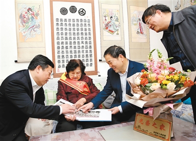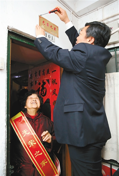 4月16日,碑林區(qū)工作人員給周蘭珍家懸掛光榮牌。