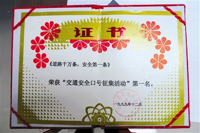 朱國芬擬定的口號,榮獲第一名。受訪者供圖 “道路千萬條,安全第一條,行車不規(guī)范,親人兩行淚。”賀歲電影《流浪地球》中這句臺詞引發(fā)笑點,也被網(wǎng)友怒贊“太魔性”,更掀起了全社會造句的熱潮,一時間,刷爆各大平臺。 這句臺詞究竟是怎么來的?導(dǎo)演郭帆表示是自己早前在路邊看到的,就放到了電影中的交通規(guī)章提示上。 2月22日,新京報記者從江蘇省公安廳交警總隊獲悉,“道路千萬條,安全第一條”這句“硬核”臺詞,確實是真實存在的交通安全宣傳口號,原作者是一位警嫂。 1999年公安部交通管理局曾舉辦“交通安全口號征集活動”,當(dāng)時獲得一等獎的口號就是這句“道路千萬條,安全第一條”,這句口號的提出者是來自江蘇張家港的警嫂朱國芬,她的丈夫陳士寶是當(dāng)時的張家港市交巡警大隊港區(qū)中隊的一位民警。 今年大年初一《流浪地球》上映后,朱國芬怎么也沒想到,電影里竟然出現(xiàn)了自己曾經(jīng)提出的“同款”口號,而且還火遍了全國。 江蘇省公安廳交警總隊相關(guān)負(fù)責(zé)人表示,該口號走紅,一方面是因為交通宣傳的不斷深入,安全出行早已深入人心,大家對這句口號比較有親切感;另一方面,在科幻大片中,出現(xiàn)這么“親切”的標(biāo)語,既朗朗上口又貼近真實生活,非常“接地氣”,引發(fā)了很多人的共鳴。 談參賽: 丈夫總說“安全要放在第一位” 新京報:電影中使用這句口號,你事先知悉嗎? 朱國芬:不知道啊,劇組也不可能事先跟我商量。我大概是年初六知道的,我丈夫單位的領(lǐng)導(dǎo)看了電影以后和我們說的。然后我問了下我外孫,他說電影里有這句話,我感到非常意外。 新京報:創(chuàng)作該口號的靈感來自哪里? 朱國芬:我出生于上海一個普通職工家庭,經(jīng)人介紹認(rèn)識了當(dāng)時在上海當(dāng)兵的陳士寶。我倆婚后因工作原因分居兩地,1987年一同來到了張家港。到張家港后,我丈夫成為一名交警。 作為交警的妻子,慢慢我也很關(guān)注交通這方面。我丈夫總是說“安全要放在第一位”。 新京報:當(dāng)時從哪里獲得征集口號比賽消息的? 上世紀(jì)九十年代正是我們張家港市發(fā)生翻天覆地變化的時候,道路越建越多,車子也越來越多。 當(dāng)時我在張家港市港務(wù)局辦公室工作,單位報刊收發(fā)都是我弄的,正好看到這個征集活動,我就想投稿了。 我想?yún)⒓诱骷顒拥臅r候,就想到了丈夫的那句話。 新京報:當(dāng)時為什么想去參加征集活動? 朱國芬:我一直挺喜歡動腦筋的,各種征集活動、猜謎活動,我都喜歡湊湊熱鬧。人活著就是要多動動腦子,要是能給社會再做點貢獻(xiàn),那就最好了。 新京報:這句口號是如何被擬定出來的? 朱國芬:當(dāng)時港區(qū)在新建很多馬路,老陳跟我講過一些他碰到的交通事故,我覺得即便道路再四通八達(dá),但只有保證了安全,其他事情才有意義。 這條口號雖然只有簡簡單單10個字,但一下就讓我想到了這些年迅速發(fā)展的道路交通和各種慘烈的事故現(xiàn)場,字字切中要害,而且通俗易懂,又好背好記、朗朗上口,少年老人都能記住。 新京報:創(chuàng)作這句口號的初衷,想傳達(dá)的是什么? 朱國芬:創(chuàng)作口號的初衷是為交通管理工作做一點貢獻(xiàn)吧,丈夫又是從事交警工作,我特別理解交通安全的重要性,也希望大家能遵守交通規(guī)則,把安全放在第一條。 談獲獎: 獲獎后,市里道路掛出了這句口號 新京報:介紹下當(dāng)時獲獎情況。 朱國芬:投稿一個多月以后,我接到北京來的電話,說這條標(biāo)語獲獎了,我特別意外和驚喜,他們讓我去北京領(lǐng)獎,考慮到工作的原因,我沒去,他們把證書和獎金都給我寄了過來。 我記得當(dāng)時自己很激動,一方面是自己的口號得到了肯定。另一方面,為自己和丈夫所熱愛的交通管理工作做出小小的貢獻(xiàn)而自豪。 新京報:聽說當(dāng)時還在張家港交通警察圈引起轟動? 朱國芬:也不算轟動吧,當(dāng)時我在港務(wù)局辦公室工作,同事知道后特別驚訝。我丈夫老陳也非常開心,和他的交警同事們都說了,所以現(xiàn)在老一輩的交警都知道這個事。 新京報:當(dāng)年獲獎后,該口號有被交警部門采納、使用嗎? 朱國芬:當(dāng)年獲獎以后雜志上有刊登獲獎的標(biāo)語,我丈夫的同事知道以后也在我們市區(qū)掛了這個標(biāo)語的橫幅,我記得當(dāng)時我們市里有兩條路就是掛的這個橫幅。后來我也在其他地方見過、聽過這個口號,但沒有跟別人講起我們獲獎的故事。 新京報:這條參賽口號得獎后,你還有沒有參加過類似的征集活動? 朱國芬:參加這個征集活動以后,我還參加了張家港市路名征集,我和丈夫一起想的“港城大道”也獲獎了,現(xiàn)在它是我們張家港的一條主干道。 談走紅: 希望大家重點關(guān)心交通安全 新京報:你介意這句口號被“借用”嗎? 朱國芬:我絲毫不介意,更沒想過因為這句口號被使用,而向電影出品方要錢,我覺得這說不上侵權(quán),我覺得能為社會再做點貢獻(xiàn),心里特別開心。 不管這句話出自哪里,我希望每一位交通參與者都能記住,時時刻刻把安全放在首位,“道路千萬條,安全第一條”需要烙印在每個人的頭腦中。大家能認(rèn)可這句話我就覺得自己做了點貢獻(xiàn),特別開心! 新京報:現(xiàn)在很多媒體采訪你,有何感受? 朱國芬: