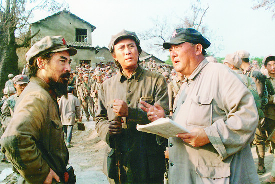拍攝中的翟俊杰 記者:61年的軍旅生活為您帶來(lái)怎樣的影響? 翟俊杰:部隊(duì)的文藝工作者一定要記。何沂钦l(shuí),為了誰(shuí),依靠誰(shuí),要始終與人民和生活同呼吸、共命運(yùn),尋找挖掘生活的瑰寶,才能把精神力量播撒到觀眾心里。當(dāng)我被授予“國(guó)家突出貢獻(xiàn)電影藝術(shù)家”稱號(hào)時(shí),和王心剛、張良、田華等前輩相比我感到慚愧。這是一種激勵(lì),敦促我更好地用電影這種藝術(shù)形式回報(bào)社會(huì)。 軍旅生活不僅在思想層面對(duì)我有深刻影響,也讓我切實(shí)體會(huì)到真實(shí)的戰(zhàn)爭(zhēng)場(chǎng)景,對(duì)我日后拍攝戰(zhàn)爭(zhēng)題材電影有很大幫助。我經(jīng)歷過(guò)殘酷的戰(zhàn)爭(zhēng),缺氧嚴(yán)寒的風(fēng)雪高原磨練了我的勇氣和堅(jiān)毅。當(dāng)我把這些苦都吃下去,拍電影遇到更惡劣的天氣我也不覺(jué)得辛苦,反而覺(jué)得很知足。作為一名導(dǎo)演,若不是在西藏軍區(qū)文工團(tuán)練就的功夫,今日何能統(tǒng)領(lǐng)攝制組的眾三軍! 記者:您拍攝了許多深入人心的主旋律題材電影,包括《共和國(guó)不會(huì)忘記》、《大決戰(zhàn)》、《我的法蘭西歲月》,以及三拍長(zhǎng)征故事,主旋律電影和其它類型電影有哪些不同? 翟俊杰:重大革命歷史題材通常以大人物、大事件、大場(chǎng)面為主要元素,它不僅肩負(fù)著對(duì)“史”的正確表述,更承擔(dān)著對(duì)“史”的完美、細(xì)膩且符合藝術(shù)規(guī)律的創(chuàng)作。主旋律電影是時(shí)代精神、民族精神的記錄和寫照,我的使命和責(zé)任就是弘揚(yáng)中國(guó)精神。一次又一次“觸摸”那段抗戰(zhàn)史,每次都有一種別樣的感受,但唯一不變的是民族精神,那是一種堅(jiān)定的信念,更是中華民族傳統(tǒng)美德的集中體現(xiàn)。長(zhǎng)征精神,抗戰(zhàn)精神,人民解放戰(zhàn)爭(zhēng)精神,新時(shí)期的抗洪精神、抗震精神、航天精神……各個(gè)歷史時(shí)期的無(wú)數(shù)精神構(gòu)成了中華民族精神。弘揚(yáng)中華民族精神,弘揚(yáng)中華民族崇高品德,是時(shí)代的主旋律。弘揚(yáng)時(shí)代主旋律,是藝術(shù)工作者的使命和責(zé)任。