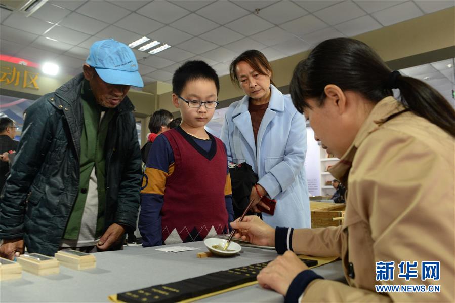 安徽宣城:觀非遺 傳文化11月9日,第四屆湘鄂贛皖四省非遺聯(lián)展在安徽省宣城市宛陵湖文化廣場舉辦。展覽設(shè)置“錦繡瀟湘”“漆藝荊楚”“瓷韻贛鄱”和“文房江淮”展區(qū),共展出52個(gè)非遺項(xiàng)目,其中國家級(jí)非遺項(xiàng)目26個(gè),吸引大批市民前來參觀。