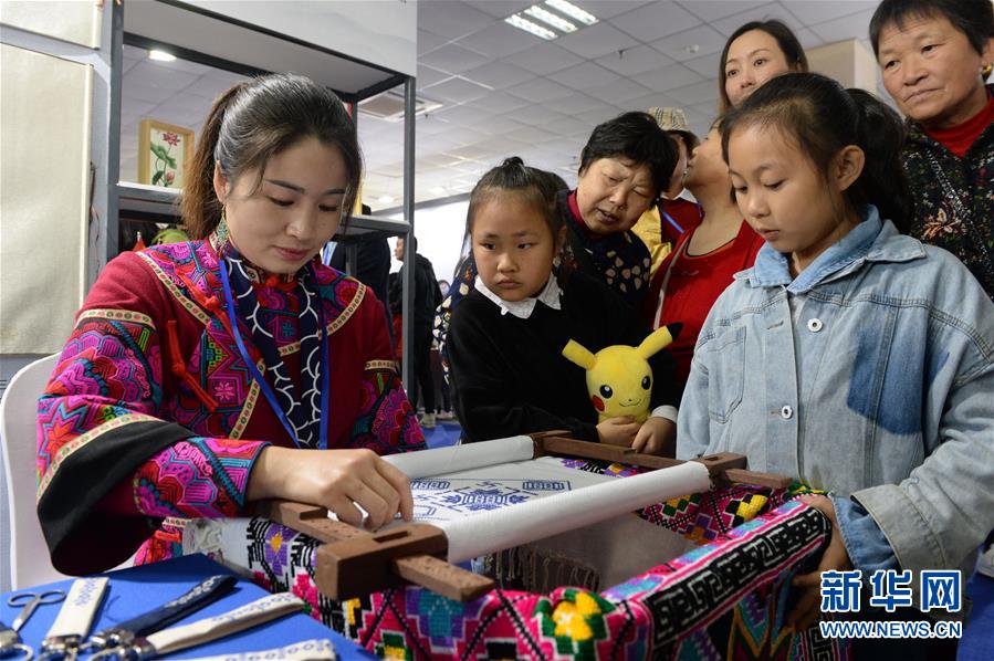 市民們在觀看土家族刺繡技藝