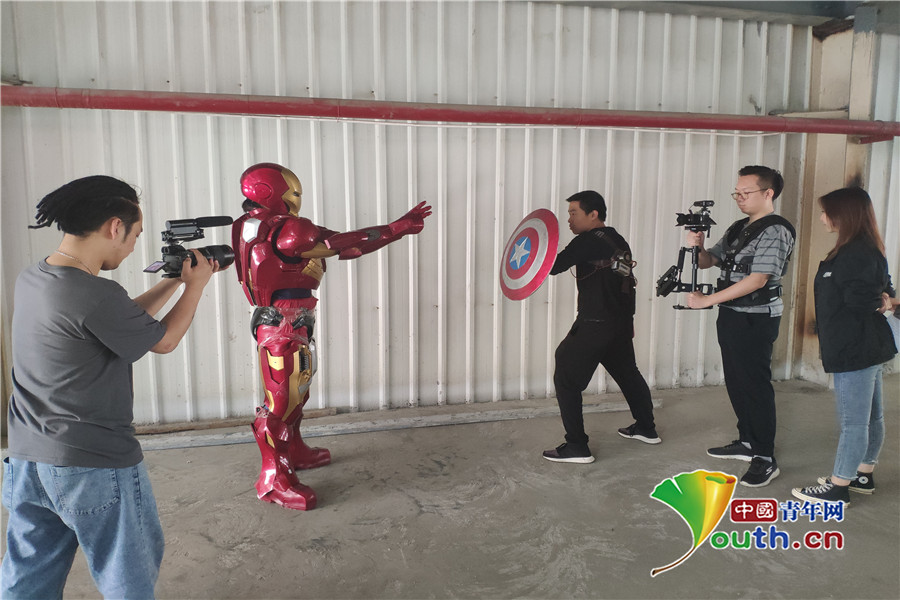 這只短視頻團(tuán)隊(duì)誕生于西安,創(chuàng)始人之一山川也是土生土長(zhǎng)的西安人。4月23日上午,記者在一片裝修工地的空地上見(jiàn)到了正在拍攝短視頻的山川,他穿著一身黑色的休閑裝,身上帶著自制的工具,這次他要扮演的是正在熱映的《復(fù)仇者聯(lián)盟4》中的美國(guó)隊(duì)長(zhǎng),他用電磁鐵實(shí)現(xiàn)了美國(guó)隊(duì)長(zhǎng)的“人盾合一”。