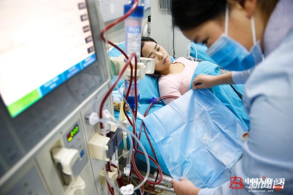 很快護(hù)士熟練的扎針、啟動(dòng)器械,紅色的血液開(kāi)始隨著透析機(jī)旋轉(zhuǎn),此時(shí)透析機(jī)成了她生命的一部分,不可分離。她每次透析會(huì)出現(xiàn)不同程度的嘔吐,從開(kāi)始到結(jié)束需要整整四個(gè)小時(shí),她咬著牙堅(jiān)持。