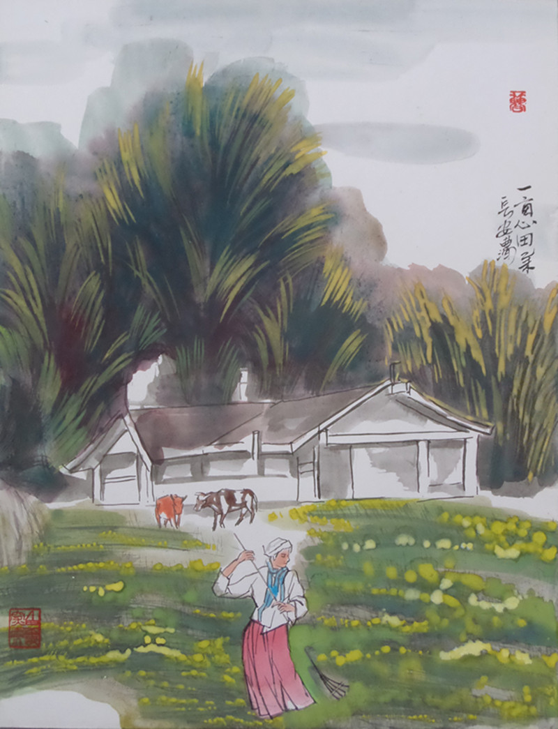 詩意的解放和畫境的奔放 ——評曹洵人文畫 王淵平 人的藝術(shù)感知來源于自然的恩賜。庸常的生活只給我們提供了生存的條件,惟有山川河流,陽光雨露才使人活出了意趣和滋味,從而在光彩和物態(tài)中體味出人世的美好來。作為一個(gè)寫作者,幾十年來我從未離開過鄉(xiāng)村,許多生活故事和風(fēng)土人情以切膚般的感受源源不斷的流淌在筆下。鄉(xiāng)村使我活得紛繁糾結(jié)而又風(fēng)生水起。從某種意義上說,文學(xué)一直以靈感和困惑交織的網(wǎng),籠罩著我不羈而又無奈的靈魂,在勞碌和寫作間隙,我時(shí)常依賴般的尋找那些藝術(shù)乃至精神的慰籍,使凝神和愁思在藝術(shù)畫面中得到溫暖的暗示和豐沛的潤澤。盡管這種感覺有時(shí)只是朦朧的瞬間,卻又分明是生命的必須,就像當(dāng)年從田間日作出來,扶著鋤頭,凝望一會(huì)兒南山的蒼翠悠遠(yuǎn),樹木掩映下村莊上端炊煙的裊裊。 一次偶然的機(jī)會(huì),我看到了曹洵的風(fēng)景畫,撲面而來的是滿目蒼翠,我眼目的干枯被他優(yōu)美的作品瞬間抹去,難以抵擋的是燦爛光影下,濕漉漉的彌漫著嫩葉尖的氣息,一團(tuán)團(tuán)充盈著負(fù)離子的透徹肺腑的清氣。隨風(fēng)搖曳的渠旁楊柳,傘蓋在瓦屋上空飄飛的桐花,還有那被農(nóng)婦牽著的黃牛,把我一下子帶進(jìn)了農(nóng)耕深處的鄉(xiāng)間。身心為之一振,一剎那產(chǎn)生了難以遏止的擁抱情懷。我知道我易感的心不光被孩提時(shí)候的無憂無慮的自由攝取,而且被那些近乎于原始的農(nóng)耕生活艱辛養(yǎng)育的絲縷情懷所包容。 美好的藝術(shù)大都與激情相關(guān),我請曹洵把他那組鄉(xiāng)間生活的畫作一一展開,整整一個(gè)上午,我都沉浸在他那些從山道鄉(xiāng)間,老街田頭取材而精心創(chuàng)作的繪畫之中。在一大片茂密的呈現(xiàn)出金黃色莊稼地里,父女二人悉心收割糧食,農(nóng)人那皺紋縱橫的臉上流淌汗水的光澤,勞作的手堅(jiān)韌有力,一把把浸透著草露和汗水的水稻、豆桿,只讓人有種欲說還休的激動(dòng)。是勞動(dòng)給了我們今天昂揚(yáng)地走在都市大街的身姿和步履,也給了我們奔波在物質(zhì)世界的力量和神情,更給了我們?yōu)橹伎嫉木呦笏季S和抽象哲思。曹洵用他彌漫著泥土氣息的畫面,不光把人帶到了被都市化拆遷遺忘的鄉(xiāng)村,更喚醒了不該忘卻的記憶和責(zé)任,這份記憶是我們生命的根,也是思想和藝術(shù)的根。 根是文學(xué)藝術(shù)的血脈,是生命之水的大愛,它達(dá)天空飄下,從地底涌出,自山巔淌下,經(jīng)過藝術(shù)家的慧心妙手,再升騰為云,曲流成溪,奔流成江河。這個(gè)藝術(shù)過程在曹洵的筆下完成得生動(dòng)鮮活,千姿百態(tài),異彩紛呈。我想,這首先得益于他二十多年的鄉(xiāng)村生活,是父老鄉(xiāng)親依著農(nóng)時(shí)把手相傳,耕耘培育他摯著的毅力,精巧的心力,他用愛心感知黃土、清流、翠葉、紅花,聆聽畜叫鳥啼,蟲唧蛙鼓。鄉(xiāng)間是有聲有色的世界,是畫家藝術(shù)家的天堂。 對數(shù)千年農(nóng)耕文明的多角度表述,是今天一個(gè)藝術(shù)家藝術(shù)造詣的深層檢驗(yàn)。鄉(xiāng)村的一草一木,犁耙鏤磨,牛羊騾馬,田坎莊稼,茅屋草舍,有著人們樸素的情感歷程,它以季節(jié)為秩序,以農(nóng)時(shí)為綱目,以辛勤的耕耘頑強(qiáng)的勞作為人本的哲學(xué),用朝日星夜的守候和忍耐來求得那浸泡著汗水的顆粒收獲。個(gè)中的辛酸苦楚,非時(shí)尚的過客男女所能感受和理解。曹洵自小生活在終南山下的村莊,孩提時(shí)跟隨父輩割草打柴,種植五谷,那些傳遞著體溫的農(nóng)具,領(lǐng)會(huì)人意的牲畜家禽,人與人之間的倫理意識(shí),在不知不覺中積累著畫家的意念和風(fēng)格品質(zhì),為日后從事藝術(shù)創(chuàng)造打下來得天獨(dú)厚的基礎(chǔ)。這也是長安畫派那些藝術(shù)先賢們深入鄉(xiāng)間記錄生活,描繪人民創(chuàng)業(yè)歷程的傳統(tǒng)優(yōu)勢。石魯、趙望云、何海霞、方濟(jì)眾當(dāng)年在秦嶺北麓的創(chuàng)作,給新一代曹洵們導(dǎo)引了開闊的路徑,曹洵不光在西安美院領(lǐng)悟了大師們的手法和風(fēng)格,更在他們的作品中學(xué)到了現(xiàn)實(shí)世界的無限美感乃至藝術(shù)范疇的精神世界。藝術(shù)界把曹洵稱之為陜西實(shí)力派畫家緣由就在于此,他非是獨(dú)辟蹊徑,卻有著許多獨(dú)到的追尋,從他涉獵的題材乃至畫風(fēng)的探求上可以領(lǐng)略,他無疑是生活的畫師,藝術(shù)的驕子。 進(jìn)入曹洵繪畫領(lǐng)域,奪目的是他色彩的運(yùn)用和把握,一枝一蔓,一花一鳥真可謂是光彩的藝術(shù),畫面中那些溫潤的色調(diào),每每把人帶入幻境,云團(tuán)和樹影在交融中過渡為濡濡的氣脈,讓人似乎能呼吸到樹脂的清香,品嘗到露水的清冽,撫摸瓜果浮面毛茸茸的觸角。畫面的立體感時(shí)常籠罩在一團(tuán)團(tuán)涌動(dòng)的和諧氣氛之中,讓人在欣賞中每每忘卻水墨的滲透,筆觸的揮抹,不由自主把審美的心思融入畫面的境界之中,感受藝術(shù)神奇的力量。 傳統(tǒng)中國畫是文人士大夫載道過程中認(rèn)識(shí)自然、表現(xiàn)自然、表達(dá)自身精神內(nèi)涵的重要手段。曹洵的人文畫風(fēng)是他長期對傳統(tǒng)國學(xué)研習(xí)追尋而得出的古典意境。魏晉古