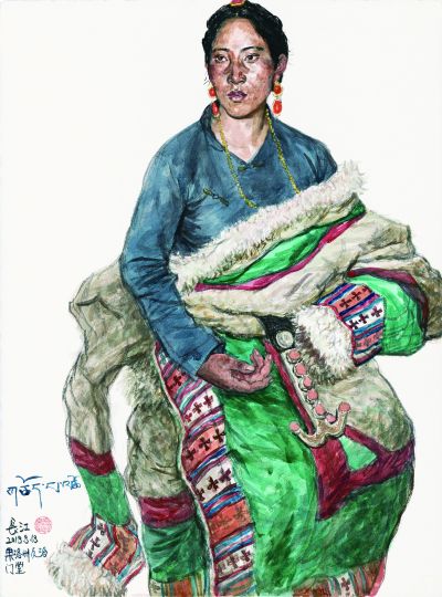 坐著的藏女(水彩) 77×56厘米 2018年 吳長江 吳長江的繪畫藝術(shù),風(fēng)格樸素、內(nèi)含大美。在他塑造的一個(gè)個(gè)雕塑般的藏民形象里,他構(gòu)筑起藝術(shù)理想的境界,去體驗(yàn)生命的境遇,體悟高原的清凈平淡與崇高。他用藝術(shù)的力量敘述性地把在世界屋脊——青藏高原生活的人們同樸素的美合二為一,將他那帶著歲月形象的筆觸,寫出了生命的深度,畫的背后是他的藝術(shù)之誠和人格指向,是對藝術(shù)與人生的常態(tài)體現(xiàn)。 吳長江的人物畫風(fēng)和內(nèi)在精神也正是以其赤子心性,達(dá)到了精神與由技進(jìn)道的契合,產(chǎn)生了審美的古樸和境界上的本色之美。長江發(fā)現(xiàn)了素描內(nèi)在的語言符號,他那準(zhǔn)確精微的繪畫語境和時(shí)間空間的可感性都指向了心性表達(dá)。這一特定時(shí)空下的形象又以審美情境和“超然象外”的藝術(shù)形象完整托出了“筆墨當(dāng)隨時(shí)代”的思想與藝術(shù)涵義。長江以生活性與體悟性的審美追尋,幾十年來往高原,以道家之學(xué)融入畫中,其靜觀式寫生更是象征著魏晉人的借物抒情、物我兩忘、人格獨(dú)立。看長江的西藏人物,所畫之法是時(shí)代審美與心性堅(jiān)守,讓人深感其“體物”之真和深,讓“真”與人格、信念合一,讓“深”與生活、藝術(shù)合一,這使其藝術(shù)達(dá)到了以素簡的極致呈現(xiàn)人物造像藝術(shù)之高峰,這是心靈的創(chuàng)造,是長江幾十年如一日的畫風(fēng)、畫格。他向往樸拙、平淡、風(fēng)骨,創(chuàng)造了醇美天然的審美境界。 而青藏高原這一方神圣沃土的自然和人文,也成為長江膜拜和甘愿俯首的心靈與精神共存圣地。這是一方有寂靜之隔的空間,陶公有“問君何能爾,心遠(yuǎn)地自偏”。長江以心遠(yuǎn)為常,他持有的平常心是靜觀下的造型之真、筆墨之真,以素描為語言的繪畫方式體現(xiàn)出他筆下的人格理想和高尚情操。其筆下的人物經(jīng)歷著人生滄桑之美,人物結(jié)構(gòu)向著這一理念透出的氣象,使每一筆都在形象中得到了真知,此刻筆墨是為境界存在的。高原艱辛的生活方式和漫長修行之路使長江的人格顯現(xiàn)出心性的純真并化作了平常心,他的畫把苦澀之現(xiàn)狀化作了心靈的自然流露,人物所呈現(xiàn)的自然之美和他在造型上千錘百煉的語言都融化在了真實(shí)的境界里。一位禪師說“我心底只看見與真實(shí)一樣的東西”,這個(gè)真實(shí),就是長江人物畫藝術(shù)再現(xiàn)了一代人向著樸素之美攀登的進(jìn)程,和他在攀登中獲得的苦澀之美及人格的潔凈之境。有誰像長江這樣為了心底的向往之美而不顧一切地用了40年的歲月,在青藏高原實(shí)現(xiàn)著自己的理想,此刻我們感到那是多么的崇高。 吳長江的人物畫不用解釋,只需慢慢品咂,漸漸體味,像群山中涌出的甘泉一般,清澈透明,讓人能夠在這里深深呼吸、自然呼吸。從上世紀(jì)80年代至今,尤其是面對西方若洪流般的人文浪潮,長江仍以學(xué)者般的智慧和定力,靜心從容地畫著自己向往之美。尤其長江還肩負(fù)著工作上的許多重?fù)?dān),他默默奉獻(xiàn)著。透過他的氣質(zhì),我們真正感到其儒家之心性和人格之境界,這些都和他的畫完全融為一體,可謂人品高,畫自高。 編輯:慕瑜 |