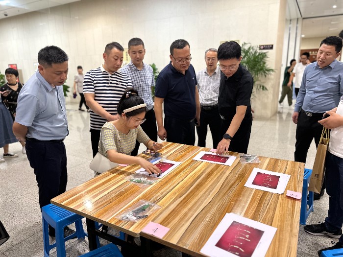 “家家乞巧望秋月,穿盡紅絲幾萬(wàn)條”。“穿梭千年 ‘布’‘七’而遇”現(xiàn)場(chǎng),觀眾在“原始”織機(jī)上穿經(jīng)梭緯,配比織就不同色彩紋樣的布藝作品。根據(jù)參與者的織布速度、質(zhì)量以及圖案的美觀程度,活動(dòng)現(xiàn)場(chǎng)還對(duì)優(yōu)秀的作品進(jìn)行品評(píng)展示。