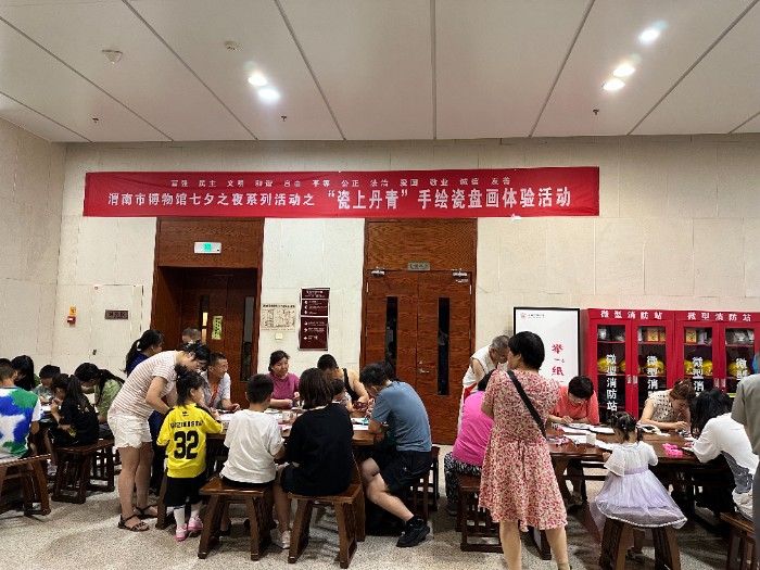 在渭南市博物館東三樓展廳展示有兩件清代粉彩瓷盤,圖案細(xì)膩、精美,色調(diào)清新淡雅。依托這兩件藏品開(kāi)展的“瓷上丹青”手繪瓷盤畫體驗(yàn)活動(dòng)吸引了不少觀眾。觀眾們?cè)谡箯d觀察文物紋樣、色彩等,又在體驗(yàn)桌案前精心繪制,創(chuàng)作屬于自己的瓷盤畫。