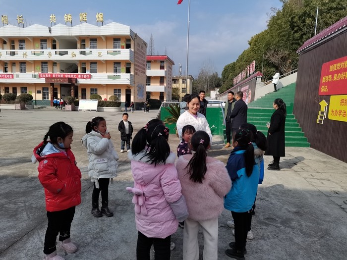 和煦的陽(yáng)光下,錯(cuò)落有致的校舍、寬敞整潔的校園環(huán)境,更新過(guò)的文化墻,整個(gè)校區(qū)呈現(xiàn)出盎然生機(jī),充滿著濃厚的文化育人氛圍,唐部長(zhǎng)一行不住地稱(chēng)贊。 正逢下課時(shí)間,孩子們看到上次為他們送教的美術(shù)老師趙芳,分外激動(dòng),紛紛圍攏過(guò)來(lái)和趙老師打招呼,詢問(wèn)啥時(shí)再給他們上課?趙老師看著這群可愛(ài)的孩子們,與他們熱烈地交談著。