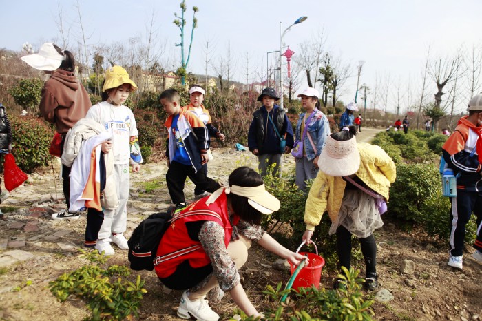 出發(fā)前,副校長(zhǎng)李如高對(duì)師生進(jìn)行安全教育,提出活動(dòng)過(guò)程中的注意事項(xiàng)和紀(jì)律要求。少先隊(duì)員們?cè)诶蠋、家長(zhǎng)志愿者及城北派出所民警、縣中醫(yī)院醫(yī)生的陪同下,一路歡歌笑語(yǔ)到達(dá)櫻桃溝勞動(dòng)實(shí)踐教育基地。 在勞動(dòng)基地,副校長(zhǎng)侯小靜向同學(xué)們分享愛(ài)綠護(hù)綠知識(shí),介紹植物的生長(zhǎng)習(xí)性,并對(duì)各班進(jìn)行勞動(dòng)任務(wù)分工。隨后,孩子們挖坑、扶苗、壘土、拔草、澆水……