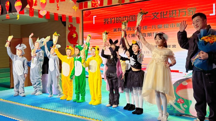 兒童繪本劇《黑貓克萊蒙》演出現(xiàn)場(chǎng) 據(jù)了解,本次活動(dòng)是由西安市碑林區(qū)少年宮聯(lián)合陜西實(shí)驗(yàn)話劇院共同舉辦的公益培訓(xùn)項(xiàng)目:“美育教育公開課——兒童戲劇‘劇目’班”。該班面向西安市區(qū)6至8歲的少年兒童招募學(xué)員,根據(jù)劇中人物角色進(jìn)行面試,層層篩選,從80余人中脫穎而出10位小朋友參加了為期三個(gè)月的培訓(xùn)活動(dòng),最終以結(jié)業(yè)匯報(bào)演出形式為本次公益課堂畫上了圓滿的句號(hào)。