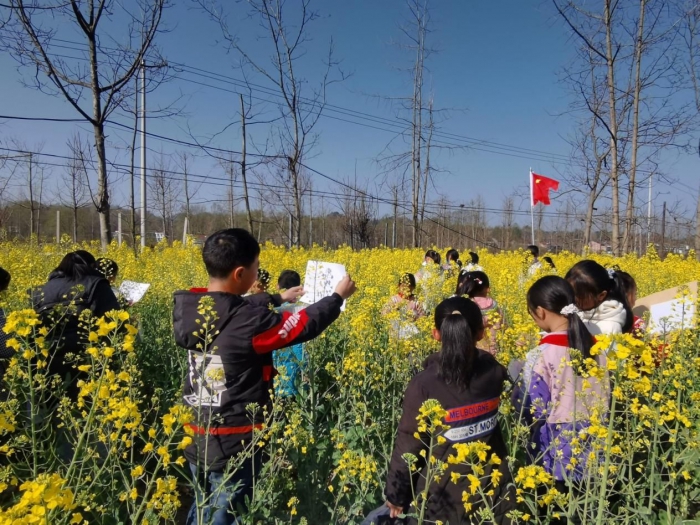 活動開始,指導(dǎo)教師張喆對全體成員進(jìn)行道路交通安全教育,隨后跟隨帶隊(duì)老師準(zhǔn)時出發(fā)。在一路歡聲笑語中,風(fēng)景秀麗的油菜花海映入眼簾!視線處,盎然的春意鋪滿山谷,層巒疊翠,金花成海,小橋流水,綠樹成蔭。
