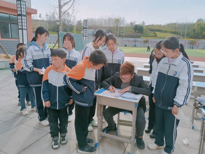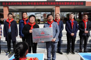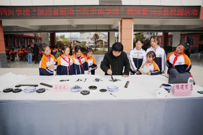 漢中市西鄉(xiāng)縣四河學(xué)校舉行“陜西省硬筆書法示范學(xué)!笔谂启邥ㄟM校園活動