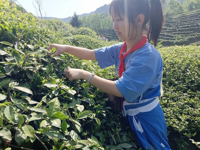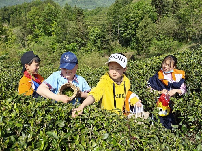 漢中市西鄉(xiāng)縣高川鎮(zhèn)中心學(xué)校學(xué)子走進(jìn)茶園