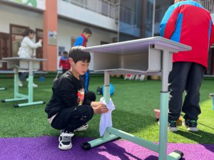 本次大賽從自理能力、生活能力、衛(wèi)生管理幾方面設置了11個比賽項目,分三個階段進行。首先是任務打卡:學生在家練習穿衣疊被、擇菜剝豆、擦桌掃地等,并在班級群打卡。接著,通過“班級擂臺賽”擇優(yōu)為每個比賽項目挑選三名學生參加學校的比賽。最后,學校集中比賽。