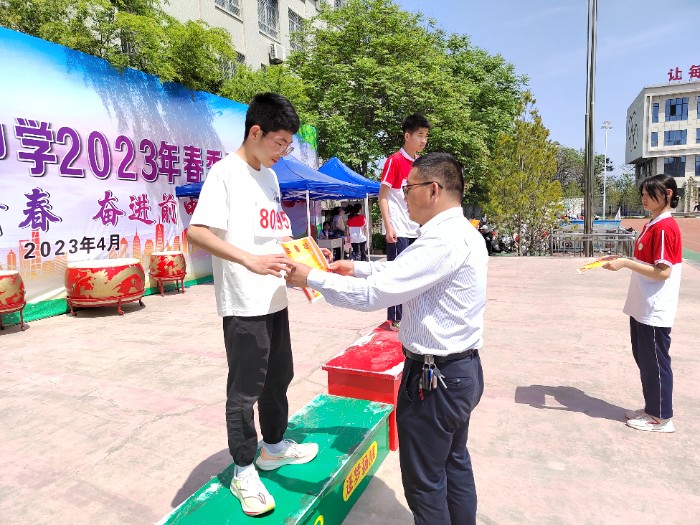 渭南市臨渭區(qū)前進(jìn)路初級(jí)中學(xué)舉行2023年春季田徑運(yùn)動(dòng)會(huì)文化藝術(shù)網(wǎng)-文化藝術(shù)報(bào)訊(全媒體記者 高盼成 通訊員 李昕欣 賈征鋒)4月26日,渭南市臨渭區(qū)前進(jìn)路初級(jí)中學(xué)2023年春季田徑運(yùn)動(dòng)會(huì)開幕。運(yùn)動(dòng)會(huì)開幕式及各項(xiàng)運(yùn)動(dòng)賽事在尚德中學(xué)操場進(jìn)行。臨渭區(qū)教育局黨工委委員、尚德中學(xué)校長王少賢,尚德中學(xué)黨委書記高永軍,本屆運(yùn)動(dòng)會(huì)組委會(huì)成員、賽事工作人員及八年級(jí)全體學(xué)生參加開幕式。開幕式由前進(jìn)路初中工會(huì)主席田俊鋒主持。