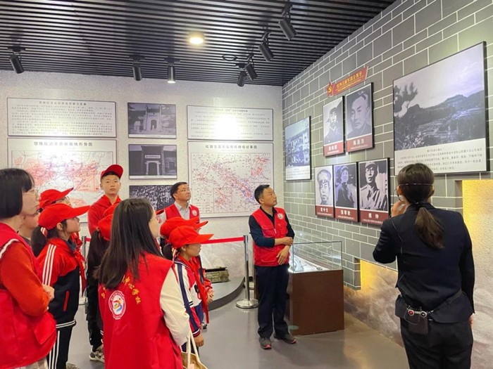 學(xué)校開展思政課“大練兵”暨黨員教師示范課活動,深刻挖掘教材德育素材,在學(xué)科教學(xué)中進行思想教育,激發(fā)學(xué)生愛黨、愛國、愛家之情。五四前夕,黨支部組織青年教師、少先隊員前往陜西省黨史教育基地——鐘家溝會議遺址研學(xué)實踐,學(xué)習(xí)紅四方面軍在鐘家溝的感人事跡、鐘家溝會議的重要意義。在展覽館的黨旗前,支部書記羅小勇帶領(lǐng)黨員教師重溫入黨誓詞,提醒黨員牢記身份、堅定信念,踔厲奮發(fā)、勇毅前行。