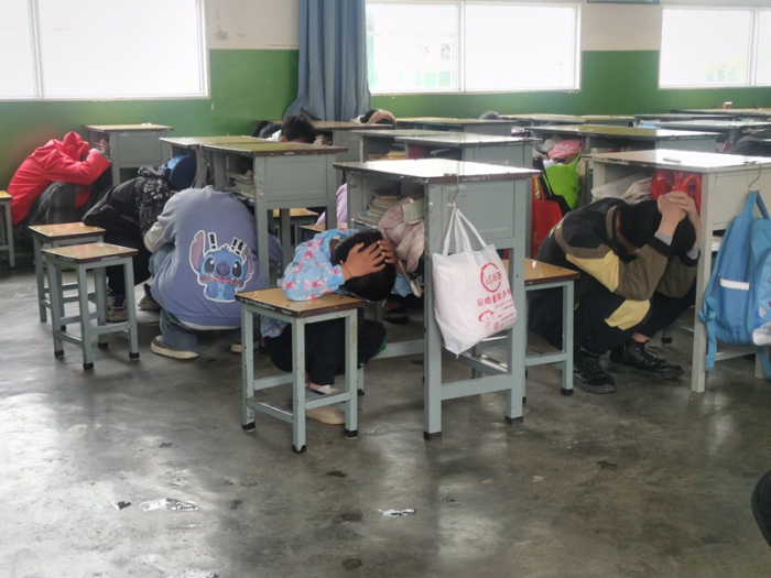 13:15,防震警報(bào)響起,正在上課的老師立即引導(dǎo)學(xué)生利用雙手或書本護(hù)住頭部,蜷縮身子,降低身體重心,蹲在桌下或桌旁就地避險(xiǎn)。一分鐘后,警報(bào)聲解除,老師們立即組織學(xué)生有序地按照既定路線疏散,學(xué)生達(dá)到指定安全地帶后,各班及時(shí)清點(diǎn)人數(shù)并上報(bào)。 副校長(zhǎng)張瑜對(duì)本次防震演練的意義及演練過程中的具體表現(xiàn)、今后注意事項(xiàng)進(jìn)行總結(jié),肯定師生們的應(yīng)急反應(yīng)速度,同時(shí)也要求師生們未雨綢繆、防微杜漸,牢記防震減災(zāi)安全知識(shí),平時(shí)多演練,安全才相伴。
