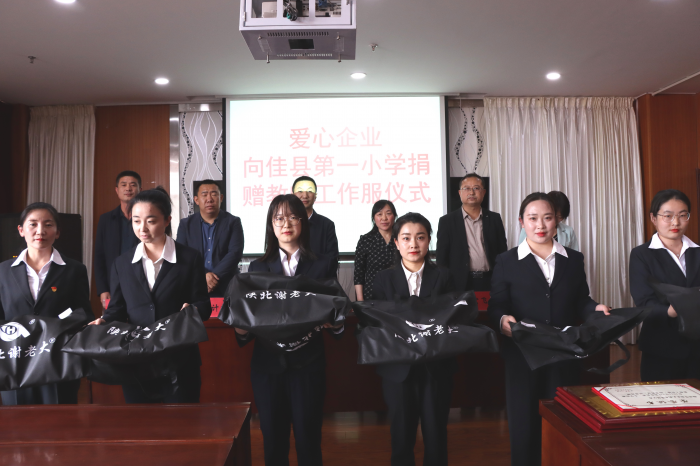 愛心企業(yè)向榆林佳縣第一小學(xué)捐贈(zèng)教師工作服文化藝術(shù)網(wǎng)-文化藝術(shù)報(bào)訊(全媒體記者 李娟娟 通訊員 康亮亮)“我們將一如既往秉持兢兢業(yè)業(yè)、勤勤懇懇的教學(xué)態(tài)度,不辜負(fù)所有學(xué)生和家長(zhǎng)的信任,不辜負(fù)社會(huì)各界的大力支持,為佳縣第一小學(xué)的發(fā)展添磚加瓦……”5月11日,在愛心企業(yè)向榆林佳縣第一小學(xué)教師捐贈(zèng)工作服儀式上,教師代表馬芳發(fā)言時(shí)如是說。 當(dāng)日,榆林市謝老大制衣有限公司、陜西友旭建筑工程有限公司和榆林市洋宇建設(shè)工程有限公司三家愛心企業(yè),聯(lián)合向佳縣第一小學(xué)教師捐贈(zèng)價(jià)值14萬(wàn)余元的112套工作服。佳縣第一小學(xué)向愛心企業(yè)回贈(zèng)牌匾以及榮譽(yù)證書,以示感謝。