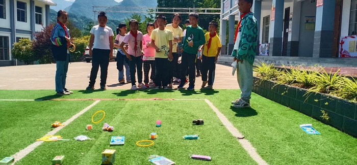 學(xué)校結(jié)合實(shí)際,設(shè)置了孩子們喜歡的運(yùn)動(dòng)競(jìng)技類、娛樂類、益智類等豐富多彩的游戲項(xiàng)目,并準(zhǔn)備了許多精美的禮物和獎(jiǎng)品!巴秹亍薄疤兹Α薄帮w花令”“猜字謎 ”“打保齡球”……處處可見孩子們開心的笑臉、活潑的身影。