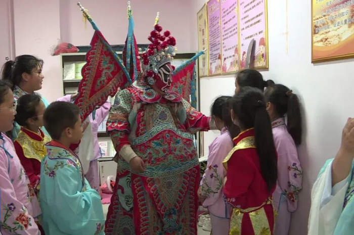 “在戲曲課堂中,我學到了唱、念、坐、打等基本功,這學期我還學到了一出新戲叫做《花木蘭》,這出戲讓我感受到了花木蘭的英姿颯爽,我以后也要好好學習,像花木蘭一樣報效祖國!贝罄罂h實驗小學戲曲社學員李依珂說。 “我非常喜歡戲曲,因為它是我國傳統(tǒng)文化之一,我想把它繼續(xù)傳承下去。在課堂上,我還學到了專業(yè)的知識和技能,在舞臺上我也更加自信了!贝罄罂h實驗小學戲曲社學員張夢洋說。 課后,戲曲社的小學員們還與縣劇團的老師們同臺演出,中氣十足的唱腔、行云流水的動作引來現(xiàn)場觀眾陣陣掌聲。演出結束后,孩子們熱情高漲,還就“非遺是什么”展開熱烈討論。