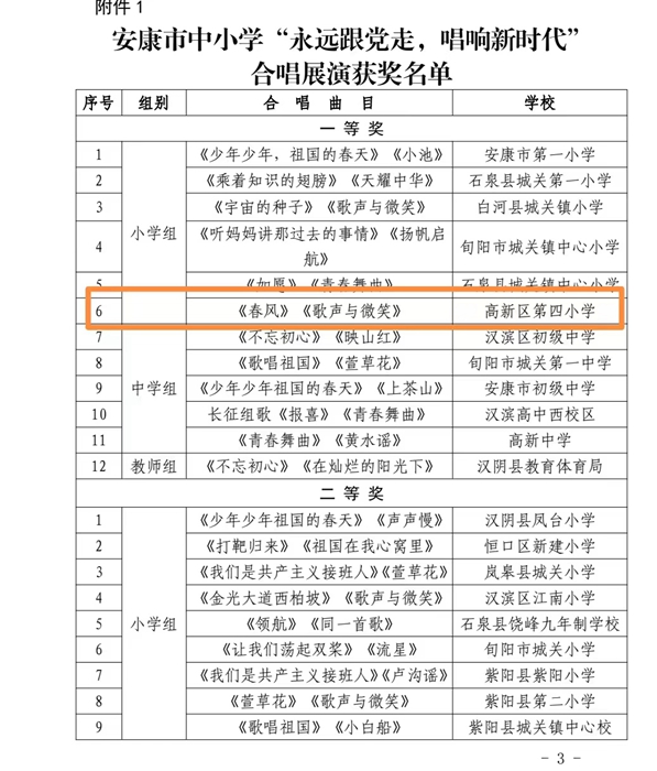 安康高新四小獲得全市中小學(xué) “永遠(yuǎn)跟黨走 唱響新時(shí)代” 合唱展演一等獎(jiǎng)