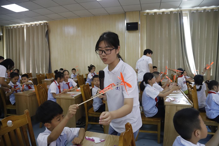 隨后志愿者前往民主鎮(zhèn)中心小學(xué),嵐山寶生態(tài)基地負(fù)責(zé)人為100余名孩子們講解了神仙豆腐制作工藝,讓他們充分了解家鄉(xiāng)的特色美食非遺文化。西北工業(yè)大學(xué)航空科普志愿隊(duì)隊(duì)長(zhǎng)趙競(jìng)元為孩子們講解飛機(jī)飛翔的原理,并播放視頻讓大家認(rèn)識(shí)更多的飛機(jī)機(jī)型,互動(dòng)過(guò)程中孩子們積極回答問(wèn)題?破展妫瑸樯絽^(qū)孩子播撒了“航空夢(mèng)”的種子。