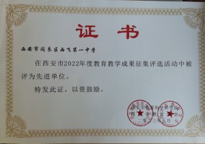 西飛一中在2022年度教育教學(xué)科研成果評(píng)選中喜獲佳績(jī)文化藝術(shù)網(wǎng)-文化藝術(shù)報(bào)訊(通訊員 于娜)金秋九月,在這收獲的季節(jié)里,西飛一中再次迎來(lái)喜訊。在西安市教育科學(xué)研究所、西安市教育學(xué)會(huì)組織開(kāi)展的2022年度教育教學(xué)成果征集評(píng)選活動(dòng)中,西飛一中再次被評(píng)為先進(jìn)單位。