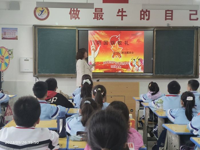 開展“唱響主旋律 筑夢新時代”歌詠比賽。學(xué)生用自己特有的方式表達對祖國的深情祝福和由衷贊美,唱出激情與夢想,唱出對偉大祖國的誠摯祝福。 開展主題班會。各班利用班會時間積極開展“我愛祖國”“祖國在我心中”“可愛的中國”主題班會。班主任講解國旗、國慶節(jié)的含義和由來,講述紅色故事,進一步激發(fā)學(xué)生的愛國情懷。