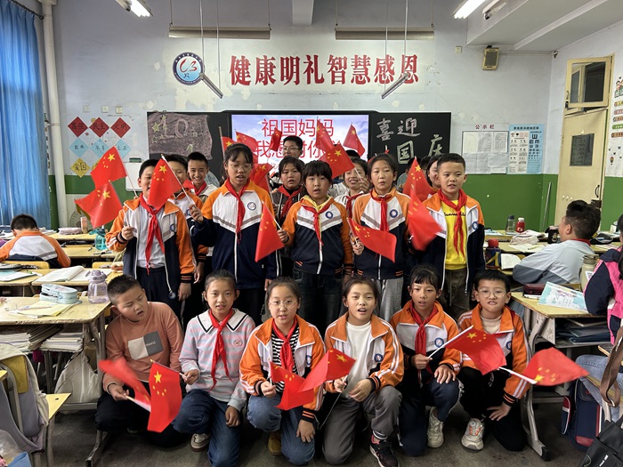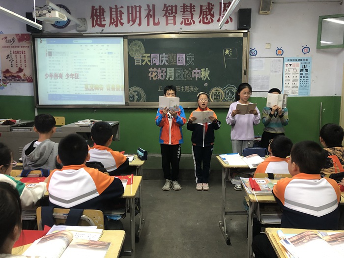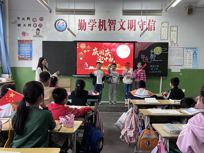 我為祖國媽媽獻(xiàn)禮。9月26日主題班隊(duì)會上,各班組織開展慶;顒印R欢昙壱浴扒墒謶c華誕、我和國旗合個影”為主題,為祖國畫幅畫、做手工制作、向國旗敬禮、和國旗合影等活動表達(dá)愛國之情;三、四年級以“歡歌載舞迎華誕”演唱紅色歌曲,或通過課桌舞、手語操、舞蹈等形式為祖國送上祝福;五、六年級以“祖國媽媽,我想對您說……”為主題,通過誠摯的祝福、朗誦紅色經(jīng)典等形式,為祖國送祝福。同時,還開展了“書寫有關(guān)中秋節(jié)的詩詞”、繪制慶雙節(jié)主題黑板報等實(shí)踐活動。同學(xué)們在活動中領(lǐng)悟中國傳統(tǒng)文化、感受祖國日新月異的發(fā)展,抒發(fā)對幸福生活的熱愛之情,表達(dá)對偉大祖國的祝愿之情。 本次慶“雙節(jié)”主題活動,加強(qiáng)了對學(xué)生的傳統(tǒng)文化熏染和愛國主義教育,堅定了同學(xué)們努力學(xué)習(xí)、振興中華的決心。讓我們共同祝愿偉大的祖國更加繁榮富強(qiáng),祝愿我們的祖國明天更美好!