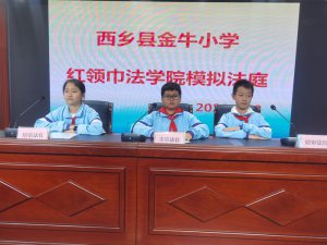 漢中市西鄉(xiāng)縣金牛小學(xué)“紅領(lǐng)巾法學(xué)院模擬法庭”“開庭”