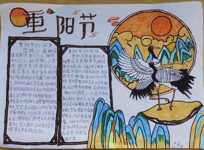 學校通過“班會學重陽、感恩敬重陽、 溫暖話重陽、詩詞頌重陽、畫報宣重陽”等活動, 組織學生學習關于重陽的故事、書寫關于重陽的詩詞、制作“重陽小報”,表達孩子們對老人的祝福及對重陽節(jié)的認知,號召全體學生閑暇時間陪長輩們聊天、做家務、干農活,給長輩洗洗腳、捶捶腿、捏捏肩、說說話,為長輩送上祝福,讓老人們充分感受到溫暖與關愛。
