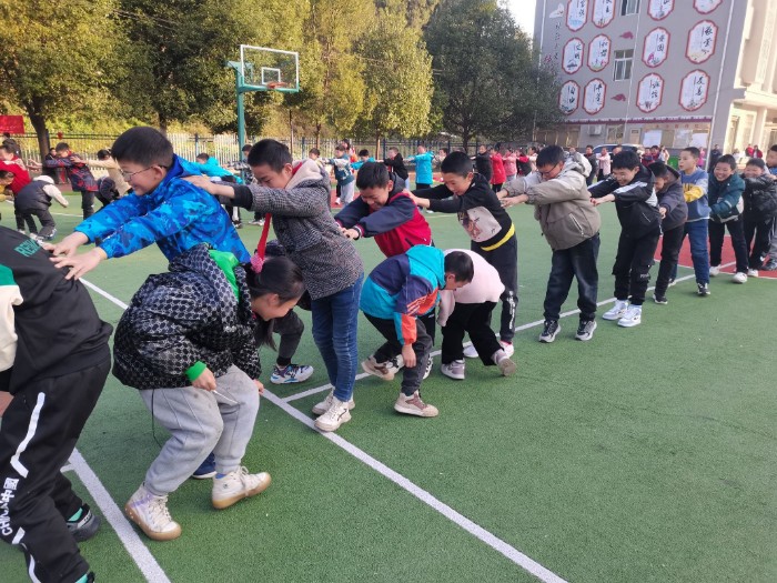 最后,師生同臺(tái)互動(dòng)項(xiàng)目“搶凳子”“跳大繩”“桃花朵朵開(kāi)”等如火如荼地進(jìn)行,科任教師帶領(lǐng)結(jié)對(duì)幫扶的學(xué)生一起參與活動(dòng)。相互配合默契,操作靈活,扣人心弦,師生一片歡呼,進(jìn)一步加深了師生心靈的溝通與交流!尤其是“桃花朵朵開(kāi)”活動(dòng)中,聽(tīng)到裁判“開(kāi)幾朵”之后,同學(xué)們迅速和幫扶的老師靠近抱團(tuán),場(chǎng)面十分熱烈,精彩不斷,歡呼聲此起彼伏,幫扶學(xué)生臉上洋溢著幸福的笑容,讓氣氛更是達(dá)到了高潮! 該運(yùn)動(dòng)會(huì)將“運(yùn)動(dòng)·健康·快樂(lè)”的教育理念完美詮釋,把單純的體育競(jìng)技轉(zhuǎn)換成了“競(jìng)技+游戲”的形式,以賽會(huì)友、強(qiáng)身健體、相互交流,增強(qiáng)了全體師生的凝聚力和合作意識(shí),展現(xiàn)了全校師生積極進(jìn)取、樂(lè)觀向上的精神風(fēng)采,掀起了陽(yáng)光體育運(yùn)動(dòng)的熱潮。
