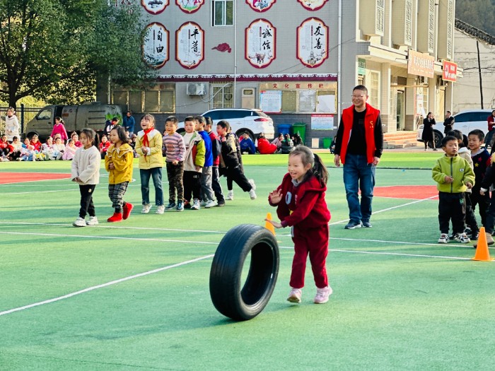 運(yùn)動(dòng)場(chǎng)上,一個(gè)個(gè)妙趣橫生的精彩瞬間深深吸引了全體師生及觀眾,操場(chǎng)邊座無(wú)虛席、觀眾嗨翻全場(chǎng),歡呼聲、喝彩聲一浪高過(guò)一浪。運(yùn)動(dòng)員熱情高漲,揮灑汗水,綻放笑容。比賽激動(dòng)人心,特別是孩子們以朝氣與童真感染了在場(chǎng)的每一位觀眾。活動(dòng)中,趣味游戲精彩連連,現(xiàn)場(chǎng)氣氛非常熱烈,讓全體師生和觀眾體驗(yàn)到了無(wú)比的開(kāi)心和快樂(lè)。 首先進(jìn)行的是“傳遞小紅帽”、“滾輪胎”、“穿山洞”“大象轉(zhuǎn)圈跑”等學(xué)生集體項(xiàng)目,隨班教師認(rèn)真組織,學(xué)生拼盡全力,發(fā)揮得淋漓盡致,他們個(gè)個(gè)腳底生風(fēng),如同腳踩風(fēng)火輪,周圍觀眾駐足觀看,大飽眼福。不僅鍛煉了孩子們的協(xié)調(diào)能力,而且讓其學(xué)會(huì)了合作與分享,在快樂(lè)中健康成長(zhǎng)。 接著,開(kāi)展了“旋風(fēng)變形跑”、“踩氣球”、“拔河”等教師集體活動(dòng),全體教師在緊張的工作之余愉悅了身心,收獲了快樂(lè)。特別是“旋風(fēng)變形跑”項(xiàng)目,裁判員一聲令下,教師們從起點(diǎn)出發(fā),雙手緊握竹竿,繞過(guò)4個(gè)標(biāo)志筒,作S形路線往返跑。他們協(xié)調(diào)配合、步調(diào)一致、齊心協(xié)力,出色完成了比賽項(xiàng)目。此時(shí)操場(chǎng)上響起了激烈的加油聲、歡呼聲、吶喊聲,此起彼伏。