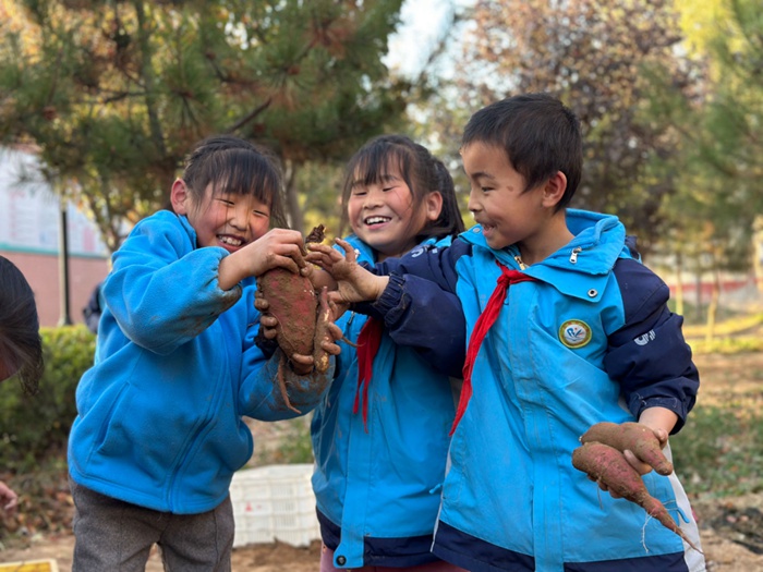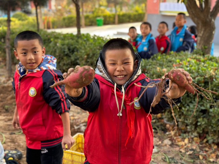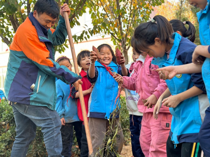 渭南市白水縣北塬中心校:看誰(shuí)挖的紅薯多