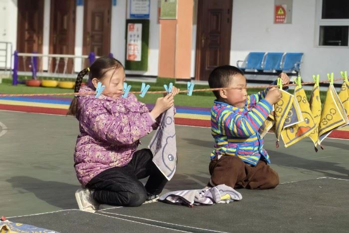 本次比賽根據(jù)學(xué)生年齡特點(diǎn)和發(fā)展水平設(shè)定了“找鞋穿鞋”“晾衣服”“疊放舀”“掰蔬菜”“掃落葉”等9個(gè)比賽項(xiàng)目。 賽場(chǎng)上,小選手們個(gè)個(gè)信心滿滿、大顯身手!罢倚┬钡谋荣愰_(kāi)始啦,只見(jiàn)有的孩子快速找到自己的鞋子并穿上,動(dòng)作干脆利落。那舀在碗里白白胖胖的花生、疊放整齊的凳子、掛晾好的毛巾、衣服贏得了現(xiàn)場(chǎng)評(píng)委老師、同學(xué)和陪讀家長(zhǎng)們的陣陣掌聲。經(jīng)過(guò)激烈的角逐,一個(gè)個(gè)“生活小能手”脫穎而出,看著自己的勞動(dòng)成果,孩子們臉上洋溢著幸福的笑容。最后,班級(jí)老師的“一分鐘取物”游戲,同學(xué)們紛紛為老師吶喊加油,老師們各顯神通,引得大家捧腹大笑,整個(gè)操場(chǎng)變成了歡樂(lè)的海洋。