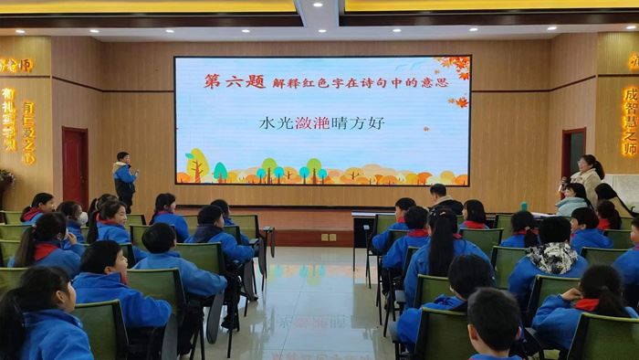 活動分班級預賽和年級決賽兩個階段,內(nèi)容以小學低中段語文統(tǒng)編教材中的古詩詞為主,內(nèi)容廣泛,題型靈活多變。11月下旬,各語文教師以班為單位組織開展預賽,從中選出5名優(yōu)秀選手,代表班級參加年級決賽。