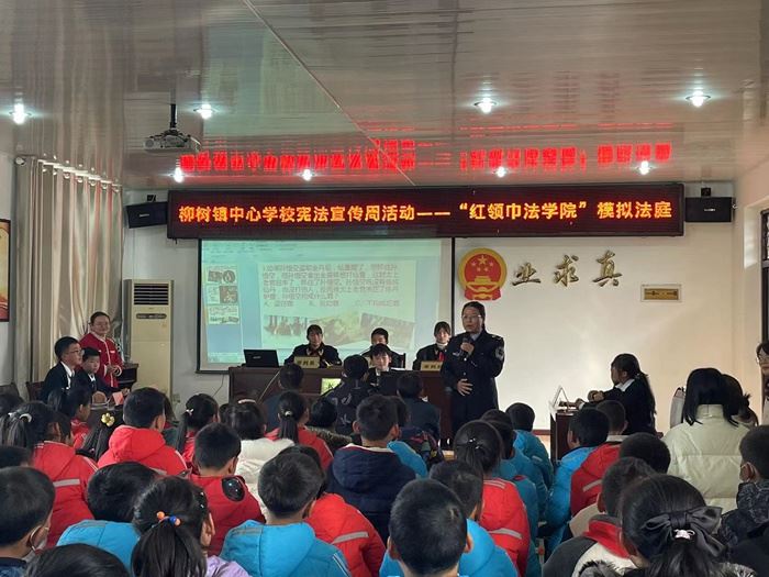 身臨其境感受憲法。12月8日,學(xué)校邀請(qǐng)峽口鎮(zhèn)中心學(xué)校李敏老師組織全校師生開展“紅領(lǐng)巾法學(xué)院”模擬庭審活動(dòng)。此次活動(dòng)由少先隊(duì)員擔(dān)任審判長(zhǎng)、審判員、公訴人、辯護(hù)人、被告人、法警、書記員等不同角色。庭審過程嚴(yán)格按照規(guī)范化庭審程序進(jìn)行,高度還原了一次真實(shí)庭審場(chǎng)景,嚴(yán)肅而又緊張的庭審氛圍讓隊(duì)員們感受到法律的神圣與威嚴(yán)。 此次憲法宣傳周系列宣傳活動(dòng)的開展,不僅弘揚(yáng)了憲法精神,還增強(qiáng)了師生的法治觀念,培養(yǎng)了師生的法治意識(shí)。