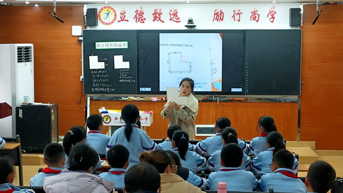 本次活動圍繞課例觀摩、專題講座、評課議課等三個環(huán)節(jié)展開。首先由黃甲珍老師執(zhí)教四年級《確定位置》,通過讓學生經(jīng)歷從“我們”到“對方”的角色體驗,產(chǎn)生“統(tǒng)一標準”的需求;在自主構建中,讓學生體會到數(shù)學的求簡原則;通過行與列中數(shù)字的對比理解“一一對應”,培養(yǎng)了學生的符號意識和空間觀念。劉遷老師執(zhí)教五年級《組合圖形的面積》。在探索組合圖形面積的過程中,讓學生主動參與到課堂活動中來。孩子們通過動手操作、觀察、推理探索了組合圖形的多種算法,在發(fā)展空間觀念的同時,促進了學生的深度學習,并逐步引導學生學會用數(shù)學的眼光看現(xiàn)實世界,學會用數(shù)學的思維思考世界,學會用數(shù)學的語言表達現(xiàn)實世界。西鄉(xiāng)縣名師喬琴霞結合《數(shù)學新課程標準》(2022版),通過教學案例闡述借助數(shù)形結合、操作感知、利用現(xiàn)代信息技術培養(yǎng)學生空間想象能力,建立幾何直觀。她結合自身經(jīng)歷闡述教師要換位思考,發(fā)現(xiàn)孩子心中的疑惑,從而因材施教。