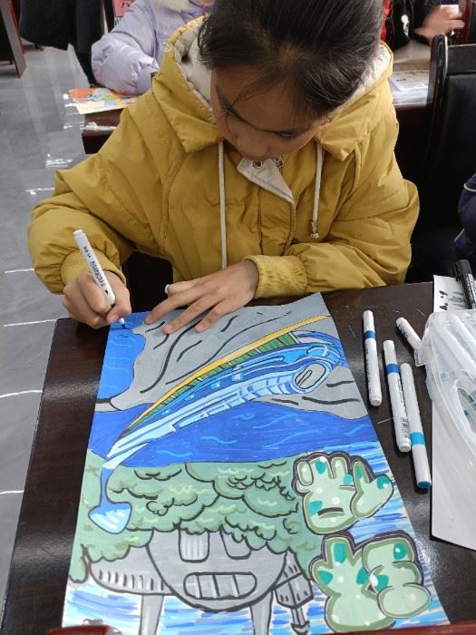 繪畫賽場(chǎng)上處處洋溢著歡樂的氣氛。那快樂的筆觸、稚趣的形象、大膽的創(chuàng)意、多彩的畫面都搖曳著孩子們?nèi)珀柟獍憬k麗多姿的想象力,一幅幅充滿童趣、幻想和活力的畫圖表達(dá)了孩子們對(duì)新年的憧憬和對(duì)未來的美好祝愿。