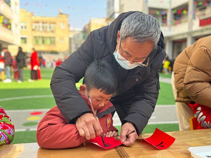 走進(jìn)寫福字區(qū)域,孩子們用毛筆一筆一劃寫下對(duì)新年的期待。做湯圓現(xiàn)場(chǎng)更是熱鬧非凡,和面、揉團(tuán)、蒸煮、品嘗,家長(zhǎng)孩子忙得不亦樂(lè)乎!翱矗@是我寫的福字。”“我去做湯圓了。這個(gè)給你嘗一下!”“㘗㘗……這是我捏的小面人!辈賵(chǎng)上,幾個(gè)孩子興奮地交談著逛廟會(huì)的成果。