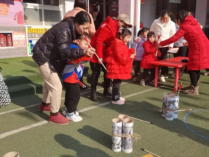 活動開始,孩子和家長們在許愿卡上寫出愿望,并將許愿卡掛在許愿樹上。幼兒舞龍隊率先亮相,鑼鼓喧天,舞龍的孩子們身姿矯健,隨著鼓點節(jié)奏舞動,龍首擺動,龍尾飛舞,歡迎大家的到來。接著,“游園會”民俗體驗活動正式開始啦,孩子和家長們一一品嘗紅糖糍粑、冰糖雪梨湯、煎餅果子、爆米花等傳統(tǒng)小吃,中國味齊聚一堂。孩子們還體驗了傳統(tǒng)游戲投壺、射箭、捏面人、套圈、剪窗花、寫“福”字、你比我猜、吹乒乓球、小小搬運工、叢林探險等,玩得不亦樂乎。活動最后,全園進(jìn)行燈籠制作大比拼,家長和孩子利用廢舊材料制作燈籠,并投票評選最喜歡的燈籠,幼兒園為家長和幼兒頒發(fā)獎品。 在這場年味的約會中,幼兒感受到了濃濃的節(jié)日氛圍,體驗了節(jié)日和親人陪伴的快樂。