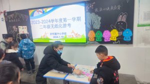 在活動(dòng)的具體實(shí)施中,老師們會(huì)結(jié)合學(xué)科知識(shí)點(diǎn),精心設(shè)計(jì)測(cè)評(píng)項(xiàng)目,從活動(dòng)方案的設(shè)計(jì)、闖關(guān)道具的準(zhǔn)備、場(chǎng)地的布置等每一個(gè)環(huán)節(jié)都做到全面而精細(xì)。 這種方式既能在游戲中檢測(cè)學(xué)生的學(xué)習(xí)情況,也能在玩的過(guò)程中提升學(xué)生的能力,讓學(xué)習(xí)變得更加有趣和有效。 此次無(wú)紙化游考共設(shè)有8個(gè)關(guān)卡,以口頭表達(dá)為主。語(yǔ)文重在通過(guò)聽(tīng)、說(shuō)、讀、寫(xiě)的形式考核學(xué)生的語(yǔ)文素養(yǎng),闖關(guān)環(huán)節(jié)包括:“巧識(shí)字”、“樂(lè)積累”、“誦美文”、“吟經(jīng)典”。數(shù)學(xué)側(cè)重通過(guò)圖形、計(jì)算、撥珠、方向考察學(xué)生的數(shù)學(xué)素養(yǎng),闖關(guān)環(huán)節(jié)包括:“計(jì)算小達(dá)人”、“心靈手巧”、“我是智多星”、“量量我在行”。測(cè)試形式趣味十足,評(píng)價(jià)方式全面多樣。