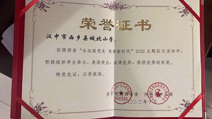 漢中市西鄉(xiāng)縣城北小學(xué)在陜西“永遠跟黨走 筑夢新時代”征文比賽獲佳績