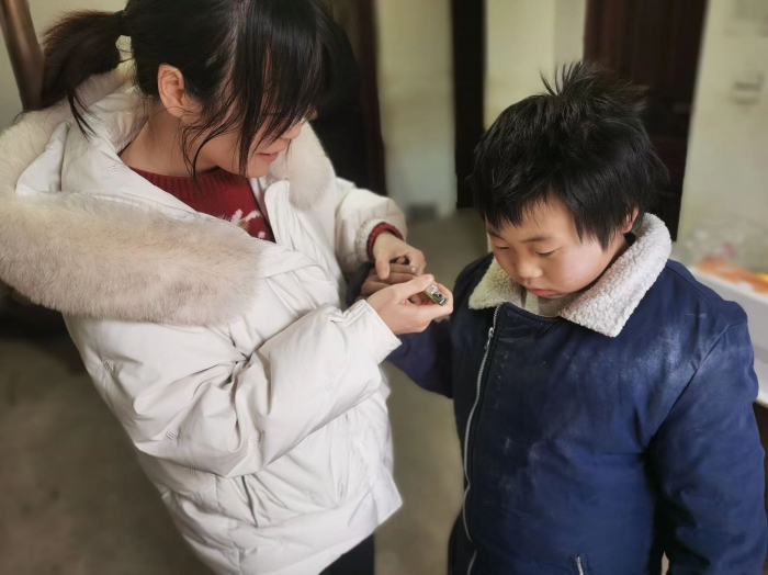真情關(guān)愛,能力提升顯成效。全體送教教師全身心投入,與家長、學(xué)生親切交流,帶去孩子們最喜歡的食品、生活用品,天冷了給孩子們帶去御寒的衣物,傳遞送教真情。還為孩子們帶去感知多彩世界的暖心課堂:運動保健課老師教孩子拍球、跳繩,和孩子一起做游戲;繪畫手工課老師教他們認識顏色、學(xué)習(xí)剪、畫、貼;生活語文課、數(shù)學(xué)課老師教他們學(xué)習(xí)打招呼問好,引導(dǎo)他們認識簡單的事物和數(shù)字,指導(dǎo)進行說話練習(xí);唱游律動課老師教他們唱兒歌,拍打節(jié)奏;生活適應(yīng)課老師教他們掃地、擦桌子,學(xué)習(xí)使用電器。同時擴大送教場地范圍,如室內(nèi)、戶外,使孩子在現(xiàn)實環(huán)境中認知社會,接觸自然,提高生活適應(yīng)能力。