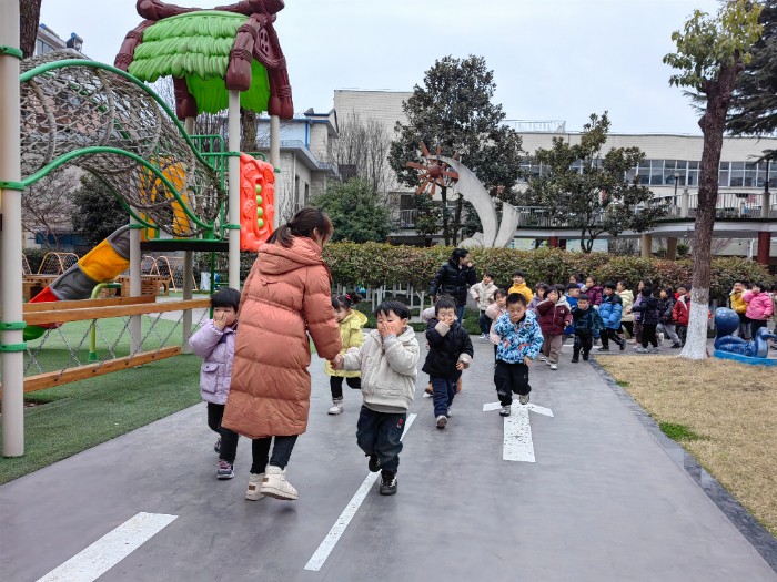 下午3點(diǎn)整,演練正式開始。隨著尖銳而急促的警報(bào)聲響起,老師們迅速而有序地引導(dǎo)幼兒們用濕毛巾捂住口鼻,低頭彎腰,沿著預(yù)設(shè)的疏散路線快速而安全地撤離到指定的安全區(qū)域。在整個(gè)撤離過(guò)程中,老師們保持高度的警覺(jué)和冷靜,確保每個(gè)幼兒都能安全撤離。 到達(dá)安全區(qū)域后,各班級(jí)的老師迅速整理隊(duì)伍,清點(diǎn)人數(shù),并向總指揮王文文報(bào)告撤離情況。整個(gè)演練過(guò)程緊張而有序,達(dá)到了預(yù)期的效果。